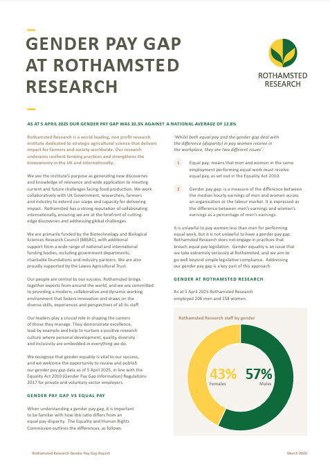The Rothamsted equality plan (GEP), enables us to focus in on gender inequalities and assist in setting gender-specific measures as part of our wider EDI work.